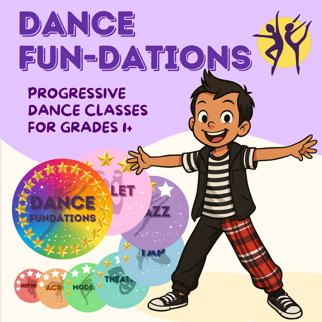 The "Dance FUNdations" program for Grades 1 and up serves as a captivating part of your child's dance journey. Beginning with essential techniques and advancing to more sophisticated skills, this program ignites creativity, nurtures teamwork, and fuels confidence as they soar. Elevating the experience, this program seamlessly weaves in immersive growth mindset activities, sculpting resilience and character. The "Dance FUNdations" sets the stage, illuminating the way for students to embrace the 7 progressive levels of each dance style.